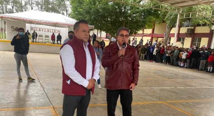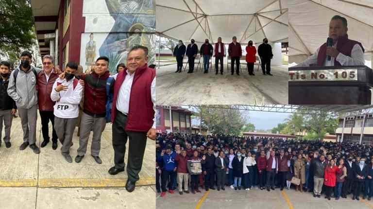 Durante su mensaje el Maestro Armando Martínez Manríquez, anuncio la entrega de aires acondicionados para equipar y poner un buzón para que los alumnos le hagan llegar sus necesidades dentro del plante y las de sus comunidades.