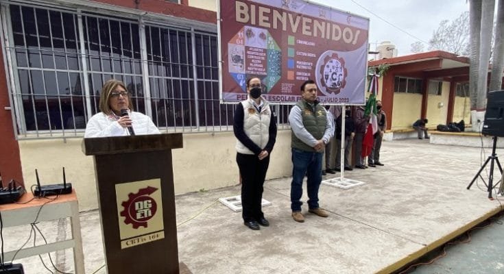 Durante su mensaje la directora del CBTIS 164, Lic. Juana María Mercado Urbina, dio una cordial bienvenida a los maestros y alumnos al segundo semestre del ciclo escolar Febrero-Julio 2023, en el cual les deseo que todos proyectos se hagan realidad.