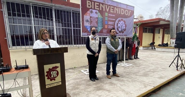 Durante su mensaje la directora del CBTIS 164, Lic. Juana María Mercado Urbina, dio una cordial bienvenida a los maestros y alumnos al segundo semestre del ciclo escolar Febrero-Julio 2023, en el cual les deseo que todos proyectos se hagan realidad.