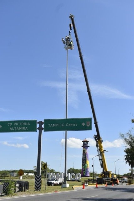 Con el propósito de brindar seguridad a las familias que habitan la Colonia Morelos, y sectores aledaños, el Ayuntamiento de Tampico a través de la Secretaría de Servicios Públicos llevó a cabo la instalación de estructuras espectaculares de iluminación en la carretera Tampico-Valles, en los límites de Tampico con el estado de Veracruz, brindando, además de seguridad, una mejor imagen a esta zona, ubicada en el poniente de la ciudad.