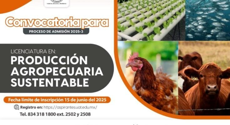 La Universidad Autónoma de Tamaulipas (UAT) tiene abierto el proceso de inscripción para ingresar a la Licenciatura en Producción Agropecuaria Sustentable que imparte la Facultad de Medicina Veterinaria y Zootecnia (FMVZ).