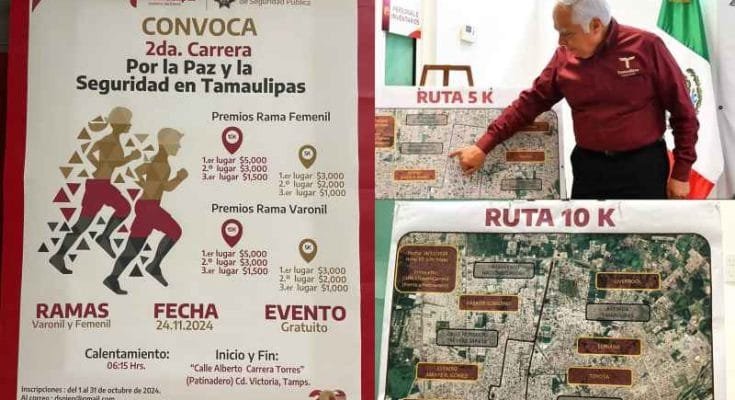 Ciudad Victoria, Tamaulipas. – Por segundo año consecutivo, la Secretaría de Seguridad Pública de Tamaulipas (SSPT) celebrará la Carrera por la Paz y la Seguridad en Tamaulipas, evento deportivo que conmemora los dos años de la creación de la Guardia Estatal y que se llevará a cabo el próximo 24 de noviembre en Ciudad Victoria.