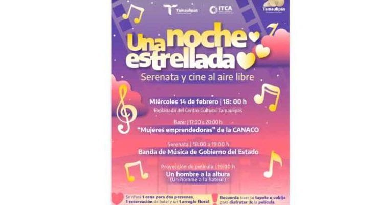 El evento denominado «Bajo una noche estrellada», se realizará el 14 de febrero a partir de las 17 horas en la Plaza Juárez en Ciudad Victoria.