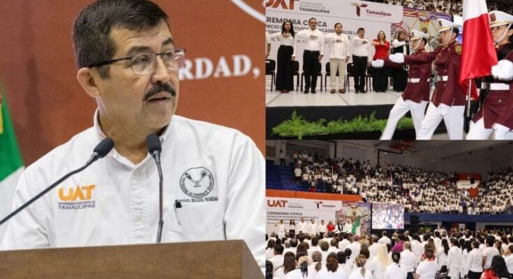 Con la presencia del secretario de Educación de Tamaulipas, Miguel Ángel Valdez García, representante del gobernador Américo Villarreal Anaya, el rector de la UAT puso en marcha el período escolar universitario en donde expresó su mensaje de bienvenida a la comunidad estudiantil, teniendo como marco los honores a los símbolos patrios.