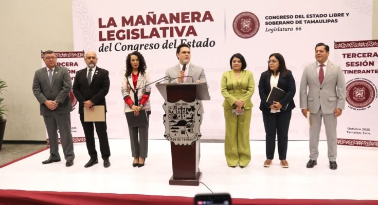 En vísperas de la sesión itinerante del Congreso del Estado que se llevó a cabo en la Expo Tampico, Centro de Convenciones y Exposiciones, el diputado Humberto Armando Prieto Herrera, presidente de la Junta de Gobierno, encabezó la conferencia de prensa “La Mañanera Legislativa”, donde destacó la importancia de la cercanía, la transparencia y la coordinación entre poderes en beneficio de las y los tamaulipecos.