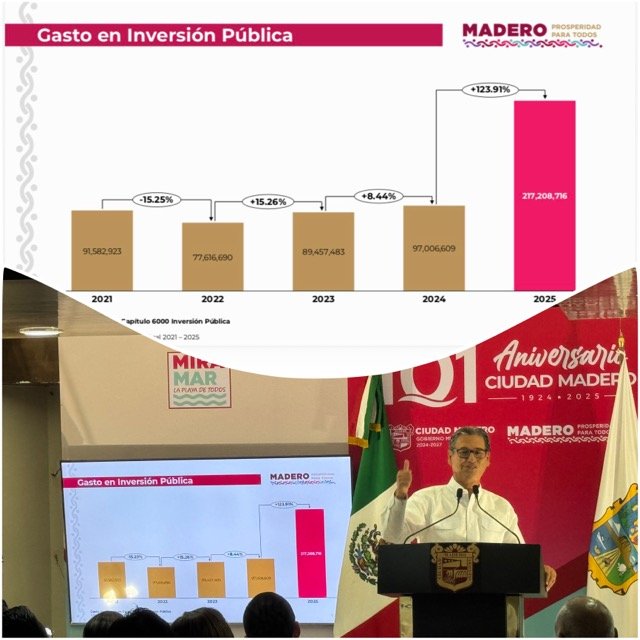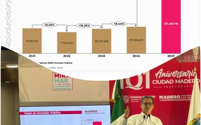 Con la entrega de diversas obras de infraestructura en distintos sectores del municipio, el Gobierno de Ciudad Madero concluyó el ejercicio 2025 en materia de inversión pública, alcanzando un monto total de 217 millones 208 mil 716 pesos, destinados a pavimentación y rehabilitación de vialidades, infraestructura Educativa, infraestructura deportiva y saneamiento de lagunas, que contribuye a una movilidad más eficiente, entornos más seguros y un mayor bienestar para las familias maderenses.