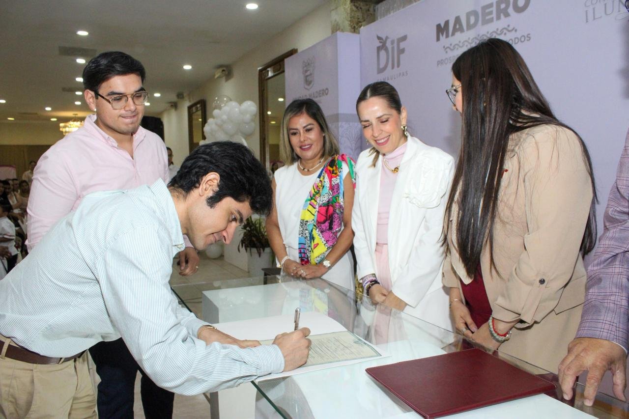 Cabe destacar que estas bodas colectivas fueron posibles gracias al trabajo de la Procuraduría de Protección a Niñas, Niños y Adolescentes del Sistema DIF Ciudad Madero, encabezada por la Lic. Antonia de Jesús Cuervo Torres, área responsable de promover este programa que brinda servicios gratuitos para formalizar legalmente las uniones y garantizar derechos a las familias.