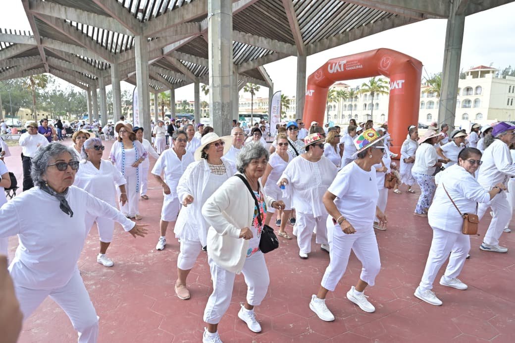 El evento, en el que participaron adultos mayores de los municipios de Madero, Altamira, Aldama, González, Mante y Tampico, tuvo lugar en la Plaza Gobernadores del máximo paseo sur tamaulipeco, siendo convocado por el Rector de la UAT, Dr. Dámaso Anaya Alvarado con el propósito de fomentar el bienestar integral de las personas de la tercera edad.