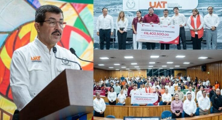 El rector de la Universidad Autónoma de Tamaulipas (UAT), Dámaso Anaya Alvarado, presidió, en el Campus Victoria, la ceremonia de entrega de la Beca Futuro Tamaulipas, Jóvenes de Nivel Superior, del período febrero-junio de 2025, que se otorgó a un total de 6 561 estudiantes de las facultades y unidades académicas de las zonas norte, centro y sur del estado.