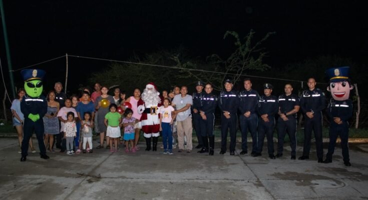 Como parte de estas acciones de un gobierno cercano y sensible, la Presidenta Municipal reconoció la labor del personal de Tránsito a cargo del comandante Héctor Rodríguez Silva, quienes, como un gesto de generosidad, llevaron a cabo la entrega de juguetes a las niñas y niños de las colonias Pescadores y Colosio, con motivo de la Navidad.