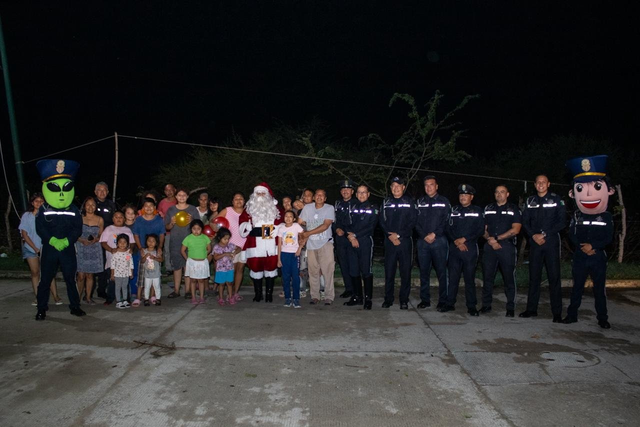 Como parte de estas acciones de un gobierno cercano y sensible, la Presidenta Municipal reconoció la labor del personal de Tránsito a cargo del comandante Héctor Rodríguez Silva, quienes, como un gesto de generosidad, llevaron a cabo la entrega de juguetes a las niñas y niños de las colonias Pescadores y Colosio, con motivo de la Navidad.