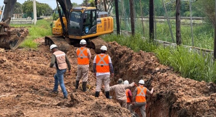 Siguiendo la directriz del Gobierno del Estado en materia de fortalecimiento de la infraestructura pública, COMAPA SUR lleva a cabo trabajos de rehabilitación en un colector de 30 pulgadas, ubicado en terrenos de la Comisión Federal de Electricidad, en la colonia Villahermosa del municipio de Tampico.