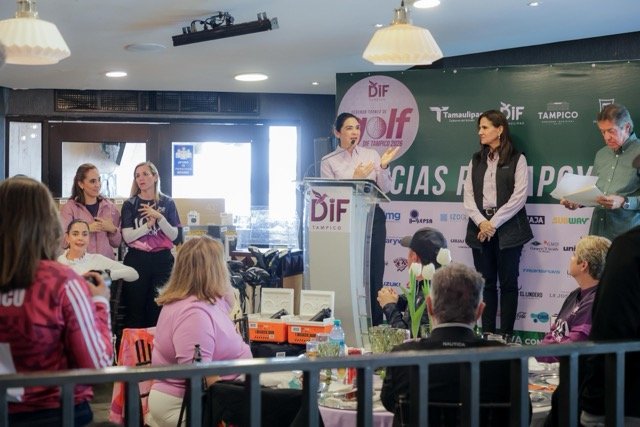 Durante su mensaje, la titular del DIF Tampico, Luz Adriana Villarreal Anaya, hizo un reconocimiento especial a Leandro René Elizondo Tuñón, Presidente del Club Campestre; así como a Antolín Sierra Gámez, Presidente de la Liga del Comité de Golf, por sumarse a esta noble causa y compartir la visión de un DIF fuerte y cercano a la gente.