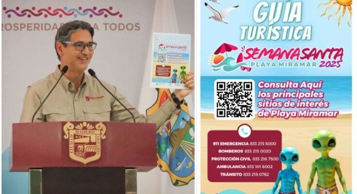 El presidente municipal Erasmo González Robledo presentó un cartel que incluye un código QR, diseñado para facilitar el acceso a una guía turística que resalta hasta 28 puntos de interés en Miramar, la playa de todos, para los visitantes que llegarán durante la Semana Santa. Esta guía destaca lugares significativos, como la Playa Incluyente, que está adaptada para personas con diferentes discapacidades, así como sitios emblemáticos y tradicionales del principal paseo y la ubicación de los 12 módulos y sus colores frente a zona de playa.