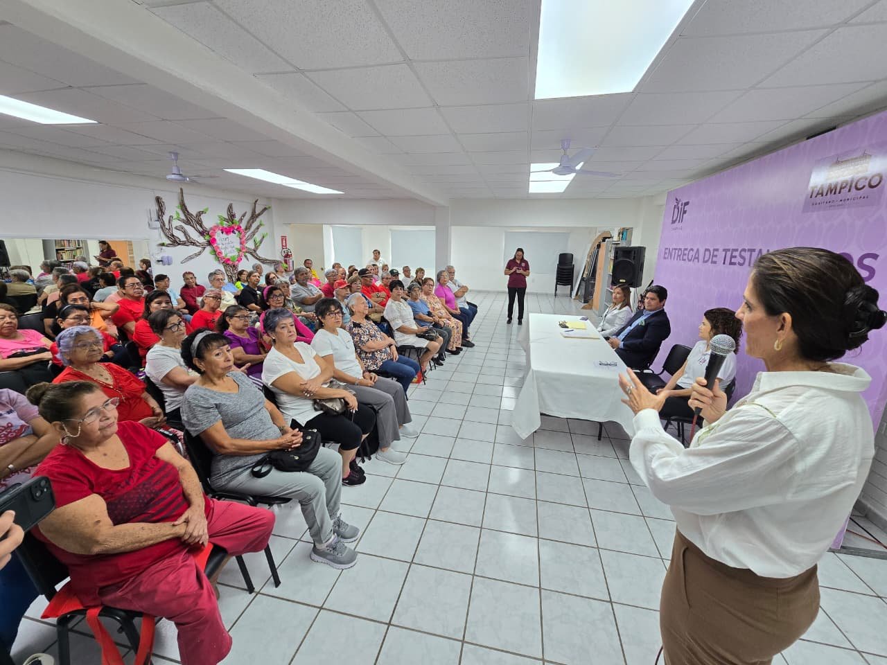 Al encabezar la primera entrega de testamentos a los adultos mayores adscritos a la Casa Club de la colonia Infonavit Cañada, la presidenta del Sistema DIF Tampico Dra. Luz Adriana Villarreal Anaya, subrayó el compromiso del organismo por ofrecer certidumbre jurídica y bienestar a este sector de la población.