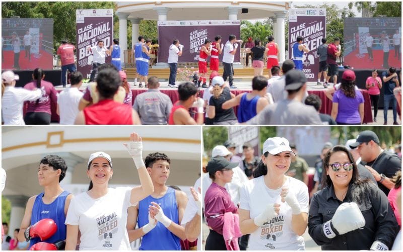 La alcaldesa de Tampico, Mónica Villarreal Anaya, participó activamente este domingo en la Clase de Box Masiva celebrada en la Plaza Constitución de Altamira, como parte de los preparativos para la gran Jornada Nacional de Boxeo que se realizará el próximo 6 de abril en todo el país, por iniciativa de la Presidenta de la nación, Claudia Sheinbaum Pardo.