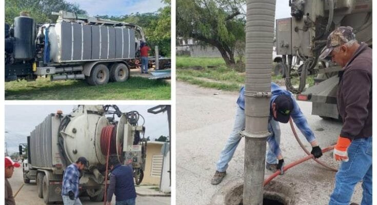 En la cabecera municipal de Soto la Marina, se realizaron trabajos de sondeo en 1,800 metros lineales de la red de drenaje, lo que permitió extraer 36 metros cúbicos de material residual y optimizar el funcionamiento del sistema de drenaje.