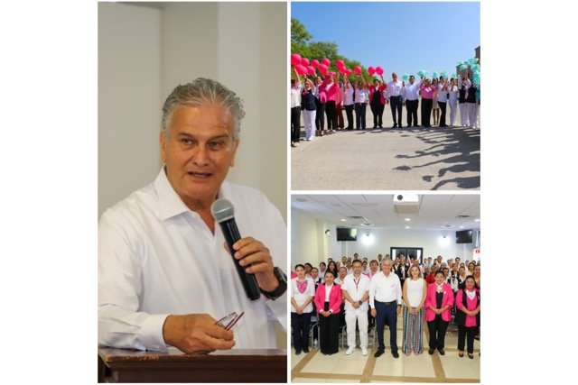 El evento, que se llevó a cabo en las instalaciones del Instituto de Ciencias y Estudios Superiores de Tamaulipas (ICEST), se organizó el tradicional lazo humano que representa la conmemoración de la lucha contra el cáncer de mama, y se contó con la asistencia de la directora del plantel, Edna Hinojosa Rubio; la directora de Desarrollo Sectorial de Enfermería, Patricia Rivera Vázquez; así como personal de enfermería de las dependencias del sector Salud.