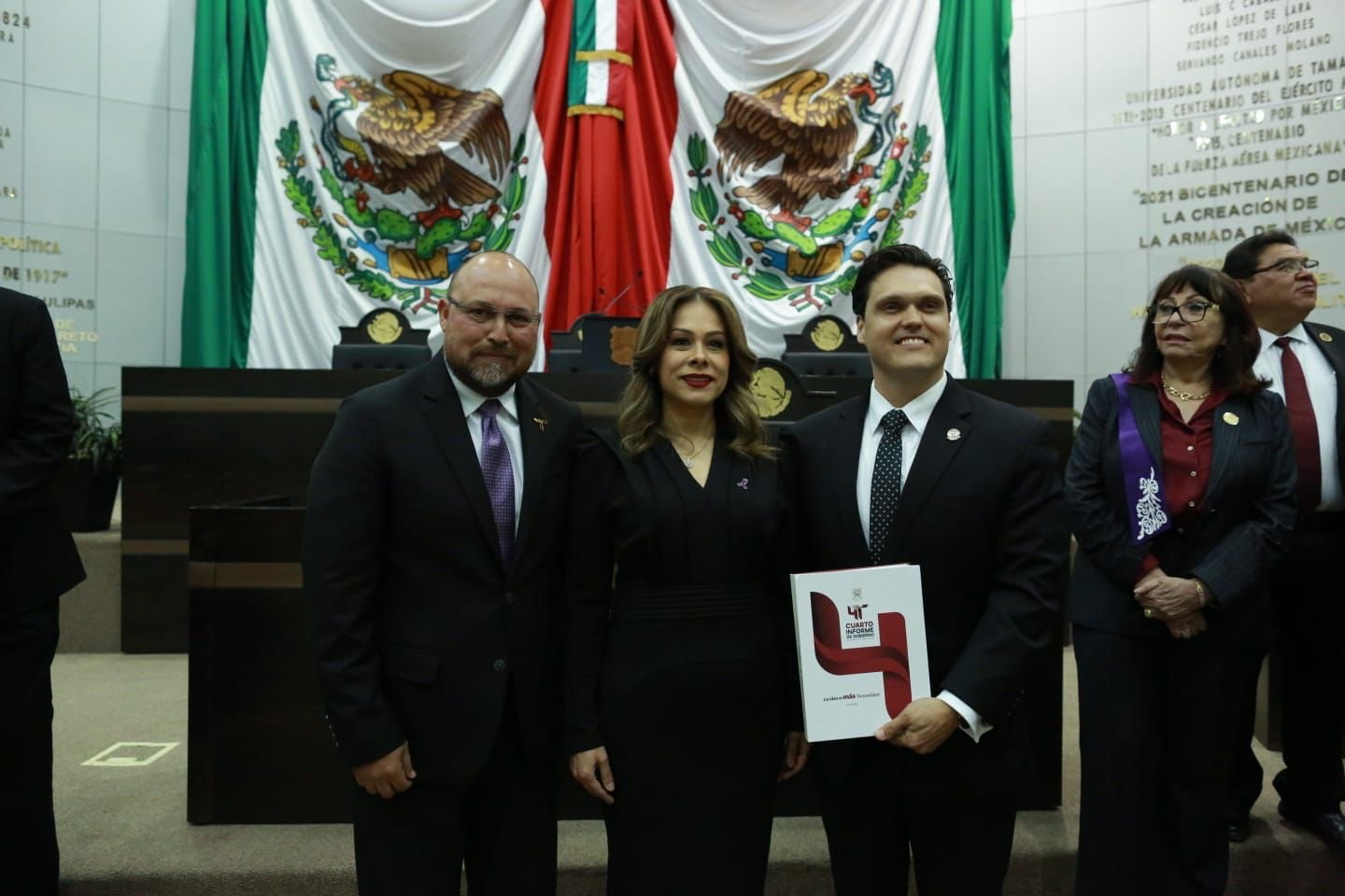 Al dar cumplimiento a lo establecido en la Constitución Política del Estado y ante la presencia del presidente de la Junta de Gobierno del Poder Legislativo, Humberto Prieto Herrera y la presidenta del Supremo Tribunal de Justicia, Tania Contreras López, el secretario general de Gobierno expresó que el Cuarto Informe del estado que guarda la administración pública está a disposición de la legislatura para los efectos que competen en ejercicio de sus facultades constitucionales y legales, y del pueblo de Tamaulipas para su análisis e información.