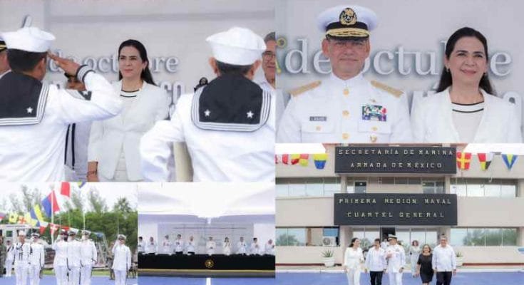 La alcaldesa Mónica Zacil Villarreal Anaya, asistió como invitada de honor a la ceremonia conmemorativa del 203 Aniversario de la creación de la Armada de México efectuada en las instalaciones de la Primera Región Naval en Ciudad Madero.