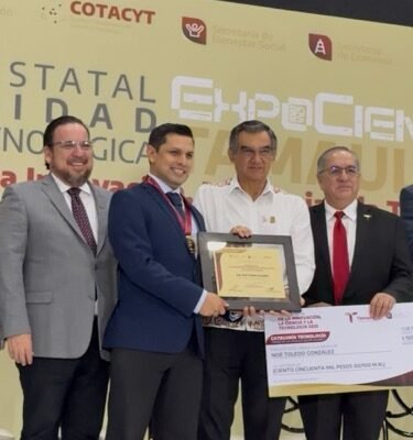 Refirió que esto marca un logro histórico para la UTM, al ser la primera vez que uno de sus docentes obtiene esta prestigiosa distinción, la cual fue entregada por el gobernador Américo Villarreal Anaya, en una ceremonia donde se reconoció a las y los tamaulipecos más destacados en los ámbitos científico, tecnológico y de innovación.
