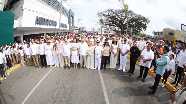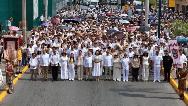 Posteriormente, frente al Palacio Municipal de Tampico, se llevó a cabo una Sesión Conjunta de Cabildo. En este marco, se entregó la medalla al mérito ciudadano “Fray Andrés de Olmos” a la destacada historiadora María Luisa Herrera Casasús, Cronista Emérita de Tampico Alto.