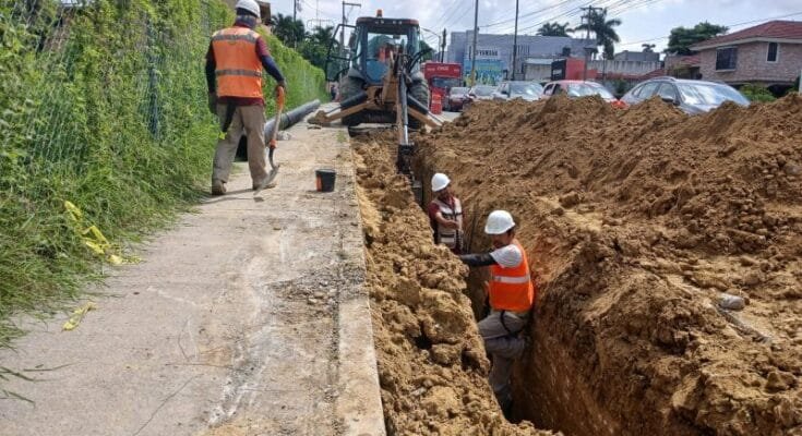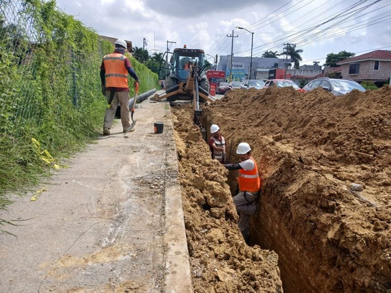 COMAPA SUR trabaja de manera acelerada en la reposición de una línea general de drenaje en la calle Agua Dulce de la colonia Vista Hermosa, uno de los sectores habitacionales y comerciales más importantes del municipio.