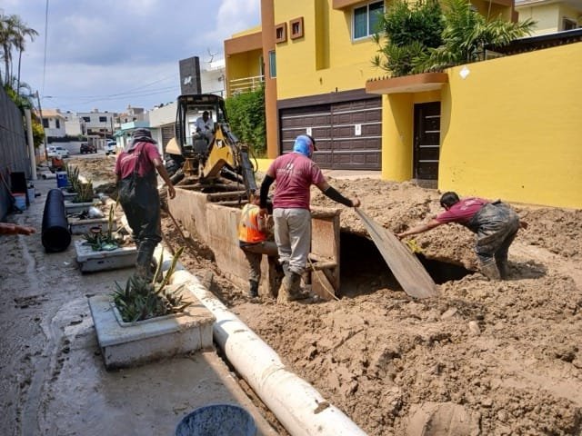 Los trabajos consisten en la sustitución de una línea de drenaje de 75 metros lineales, de los cuales ya se registra un avance aproximado del 50%, lo que permitirá concluir en el menor tiempo posible y dar una solución definitiva al problema.