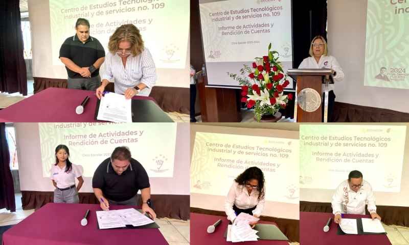 El director del CETis 109 Ing.  Jorge Vladimir López Beltrán, presentó el Informe de Actividades y Rendición de Cuentas correspondiente al Ciclo Escolar 2023-2024.