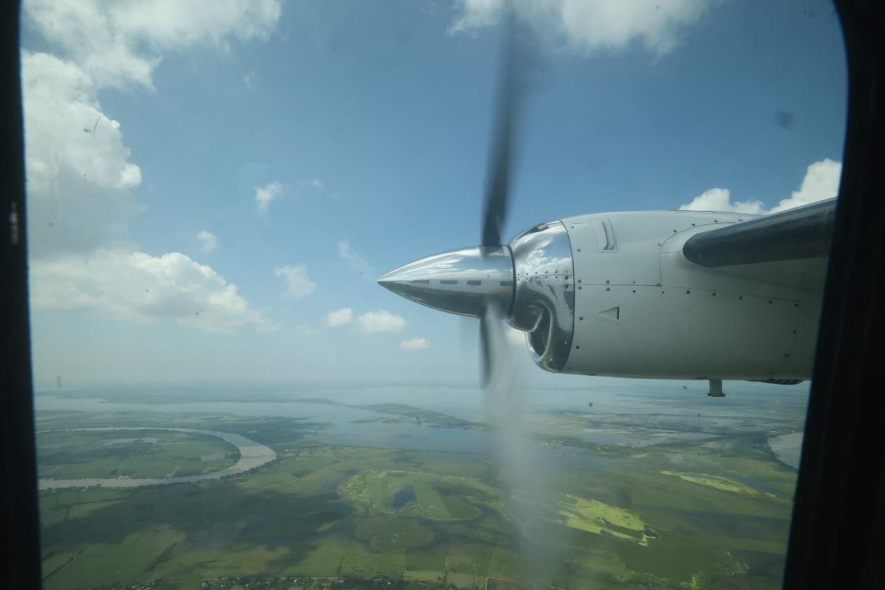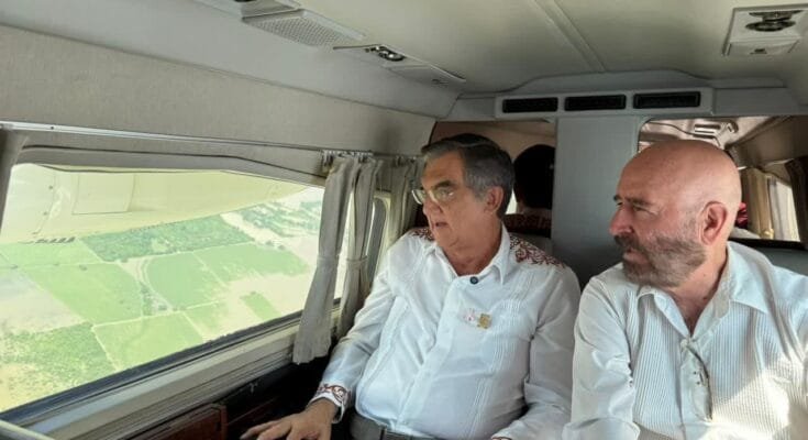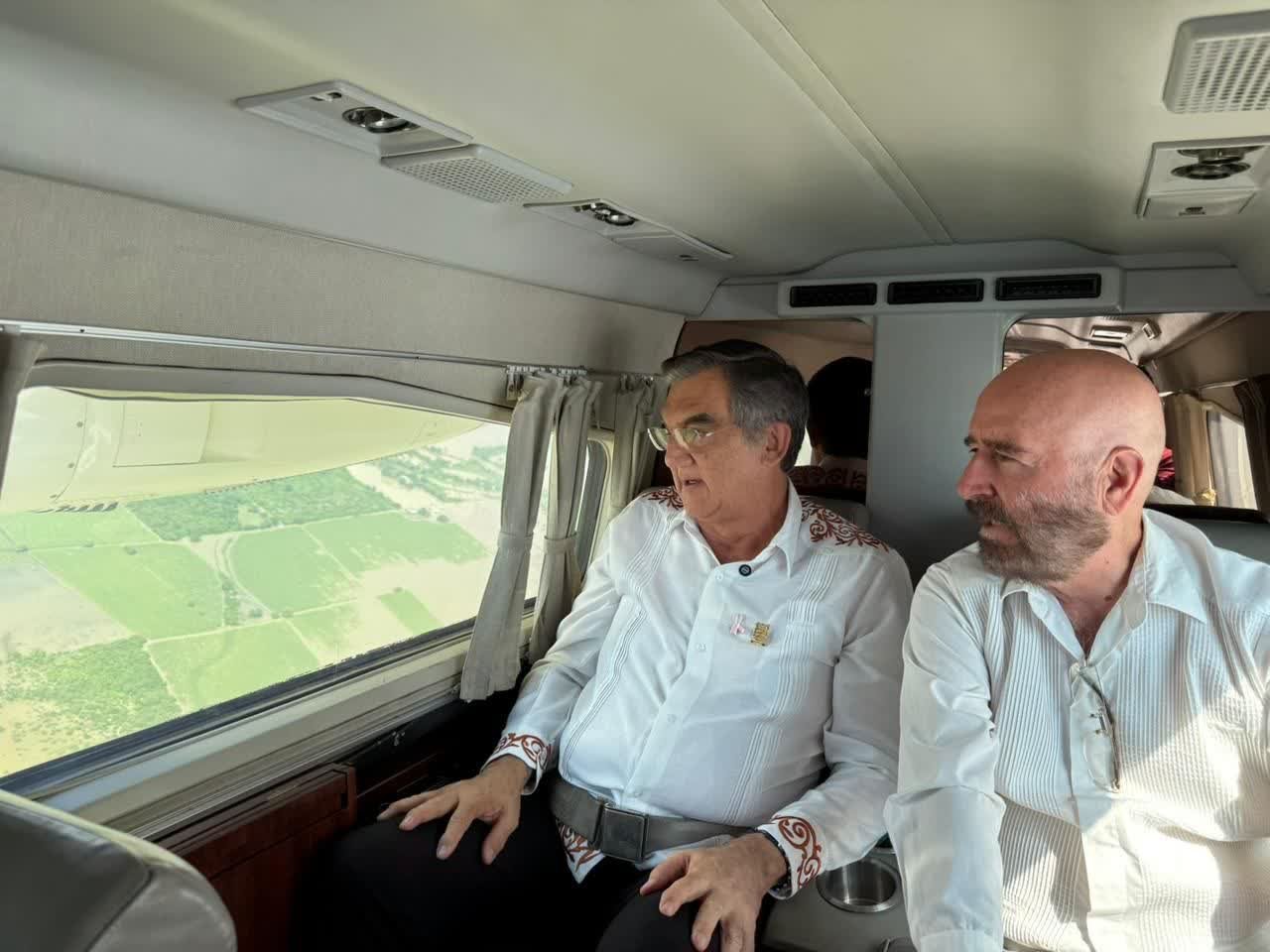 La tarde de este viernes, a bordo del avión «Tláloc» y acompañado por Raúl Quiroga Álvarez, secretario de Recursos Hidráulicos, el ejecutivo tamaulipeco recorrió las márgenes del Pánuco, hasta el municipio de Tamuín, San Luis Potosí, en donde constató las afectaciones a diversas comunidades rurales a causa del desbordamiento del río.