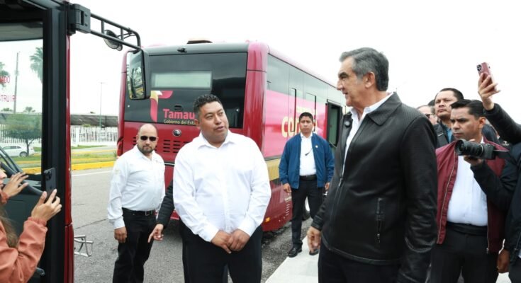 Ciudad Victoria, Tamaulipas.- El gobernador Américo Villarreal Anaya supervisó las seis unidades que integran la ruta Conecta y estimó que el próximo mes de mayo se pondrá en operación una primera etapa de este nuevo sistema de transporte público en Ciudad Victoria, para posteriormente ampliarlo a otros municipios del Estado.