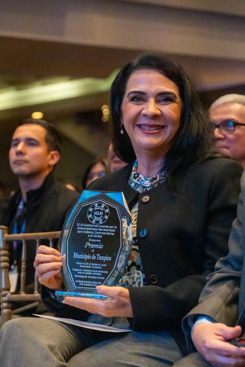 En reconocimiento a su liderazgo y a las políticas públicas implementadas para enfrentar el cambio climático, la Presidenta Municipal de Tampico, Mónica Villarreal Anaya, recibió el Premio ICLEI al Gobierno Local Sustentable – IX Edición, una de las distinciones más prestigiosas en materia de sustentabilidad para administraciones municipales.