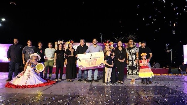 En el concurso de Catrinas, el primer lugar fue para “La Dama del Horno”, con un premio de 12 mil pesos; el segundo lugar para “La Calaverita de Azúcar”, con 10 mil pesos, y el tercer lugar para “Zacil-Ha”, con 8 mil pesos.