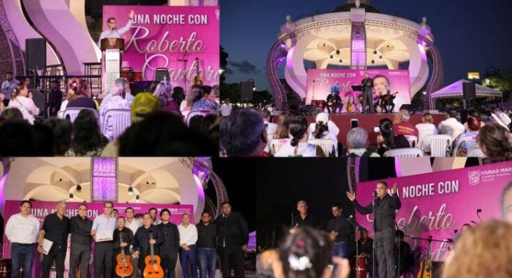 La conmemoración del natalicio del compositor y cantante orgullo maderense Roberto Cantoral, fue una gran noche de gala en la plaza Isauro Alfaro, lo que es el preámbulo de una serie de eventos artísticos culturales en su memoria, al homenaje que el Gobierno de Ciudad Madero le preparan para un concierto que tendrá lugar el 8 de agosto en el Parque Bicentenario.